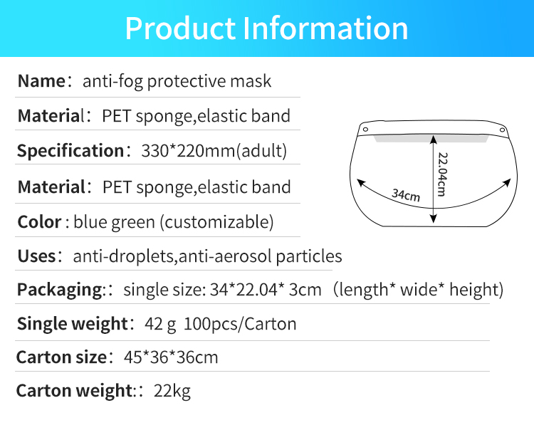 • Double Sided Anti-Fog Breathable Mask
